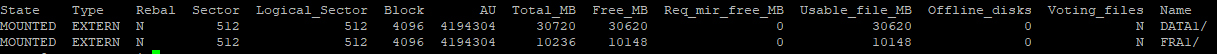 . oraenv+ASMasmcmd lsdg